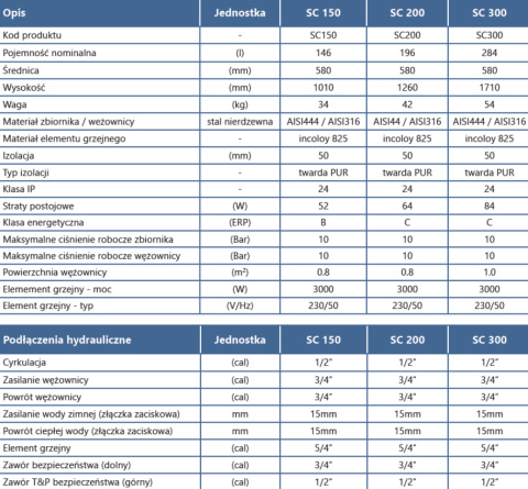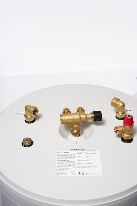 OSO HOTWATER SC300 NIERDZEWNY 300L PODGRZEWACZ C.W.U Z WĘŻOWNICĄ, ZAWORAMI BEZP. I MIESZAJĄCYM ORAZ 3KW GRZAŁKĄ (króćce od góry)