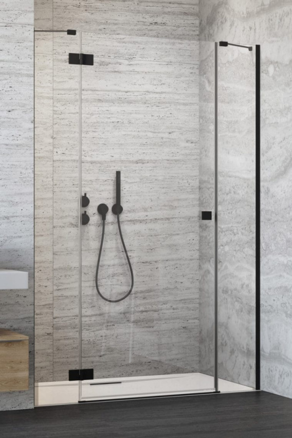 Wpisz KOD: PROMO - 10% Radaway Essenza New Black DWJS drzwi prysznicowe 60,5 cm prawe czarny mat/szkło przezroczyste 1385031-54-01R