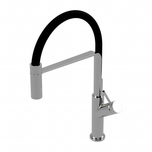 Bateria kuchenna OMNIRES VITA to połączenie doskonałej formy z najwyższą funkcjonalnością. Nowoczesny, minimalistyczny design oparty jest na kształtach łuku i koła. Obrotową wylewkę zaopatrzoną w prysznic można dodatkowo wypiąć, dzięki czemu strumień wody bez trudu dosięgnie do każdego miejsca. Górna część wylewki została wykonana z elastycznej gumy w kolorze czarnym. Całkowita wysokość baterii to 44 cm, co zwiększa wygodę użytkowania. Bateria została wykonana z wysokogatunkowego mosiądzu oraz wyposażona w najwyższej jakości głowicę ceramiczną. Innowacyjne rozwiązania technologiczne pozwalają zredukować zużycie wody o połowę oraz zapewniają najwyższy komfort użytkowania.
