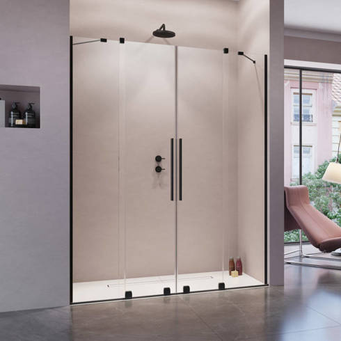 Marka Radaway Seria Furo Black DWD Szerokość 140 cm Wysokość 200 cm Rodzaj do wnęki Typ rozsuwane Wypełnienie szkło przezroczyste Powłoka ochronna tak Kolor profili czarny Wykończenie profili mat Mocowanie prawe, lewe, uniwersalne