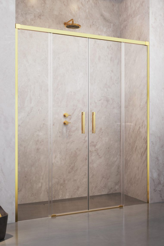Radaway Idea DWD drzwi prysznicowe 160 cm wnękowe dwuskrzydłowe złoty połysk/szkło przezroczyste 387126-09-01
