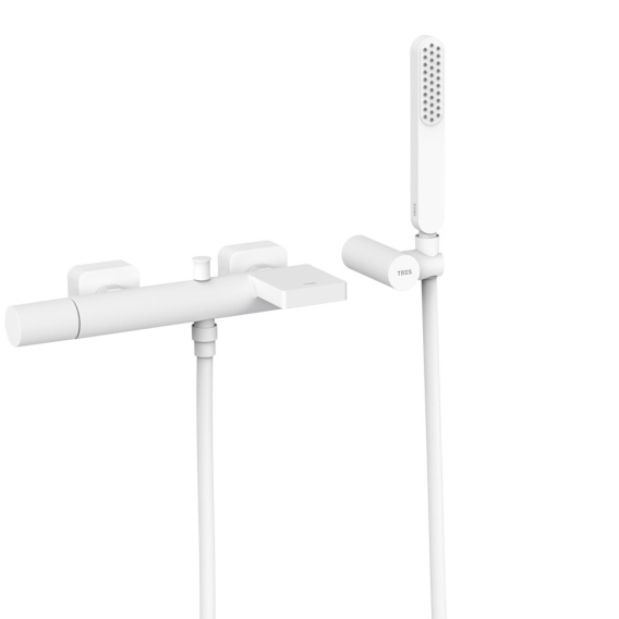 Tres Loft Colors bateria wannowo-prysznicowa ścienna z kaskadą biały mat 20017001BM