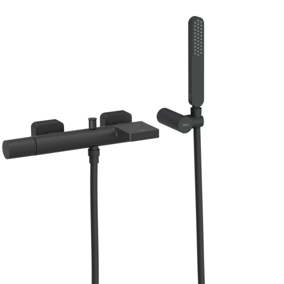 Tres Loft Colors bateria wannowo-prysznicowa ścienna z kaskadą czarny mat 20017001NM